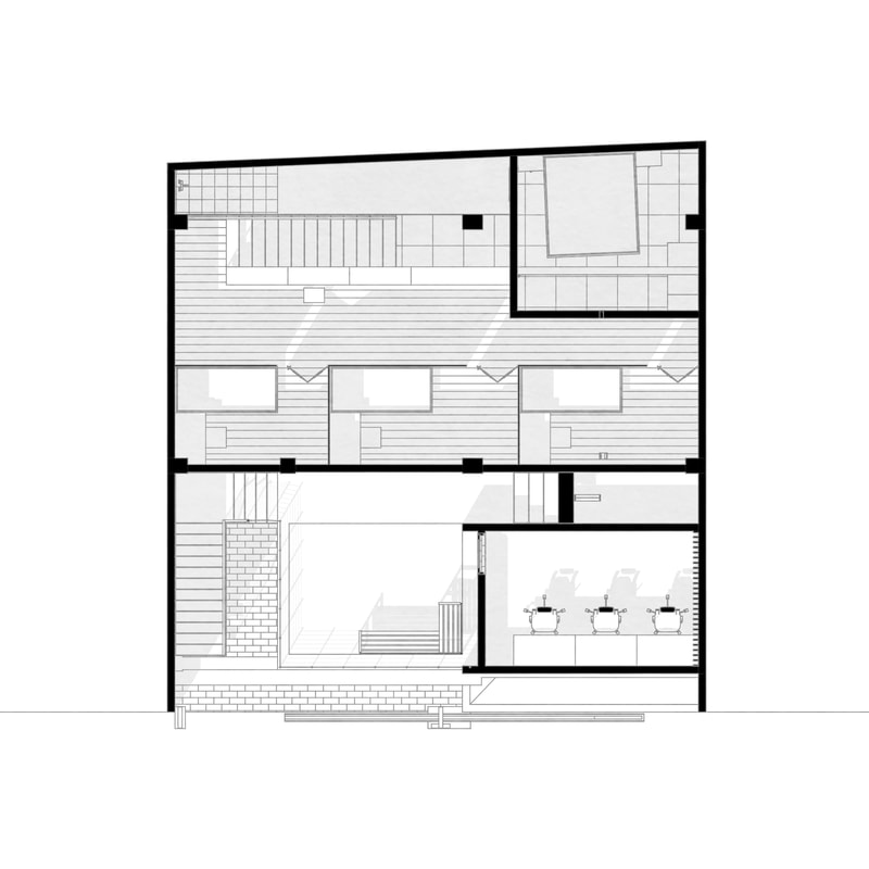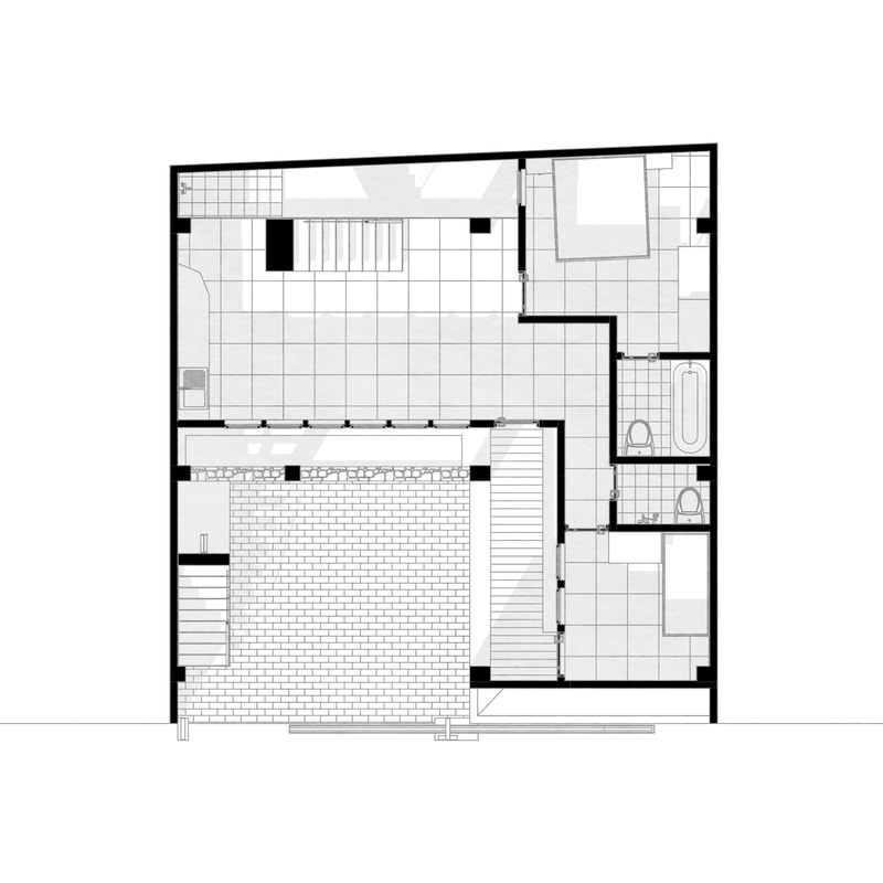Rumah ini terbagi menjadi dua area utama: ruang keluarga dan ruang publik. Ruang keluarga mencakup ruang tamu, kamar tidur, dan kamar mandi, dengan tambahan mezanin yang dirancang khusus sebagai area bermain anak. Sementara itu, ruang publik terdiri dari kantor, taman, dan ruang bersama yang fleksibel untuk berbagai aktivitas.